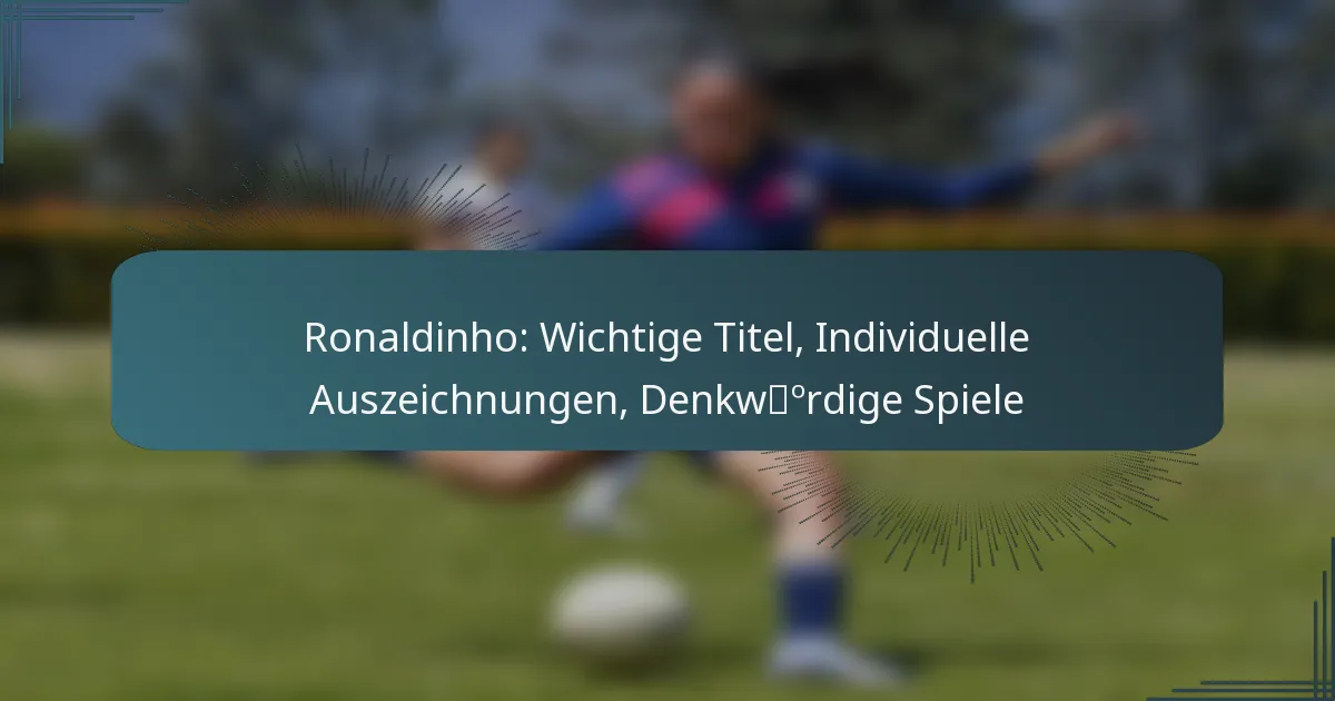 Ronaldinho, ein legendärer brasilianischer Fußballer, wird für seine bemerkenswerten Erfolge gefeiert, darunter große Titel und zahlreiche individuelle Auszeichnungen, die seinen Einfluss auf den Sport unterstreichen. Seine Karriere ist geprägt von unvergesslichen Spielen, die nicht nur sein außergewöhnliches Talent hervorheben, sondern auch seinen Status als einen der größten Fußballer aller Zeiten festigen.
